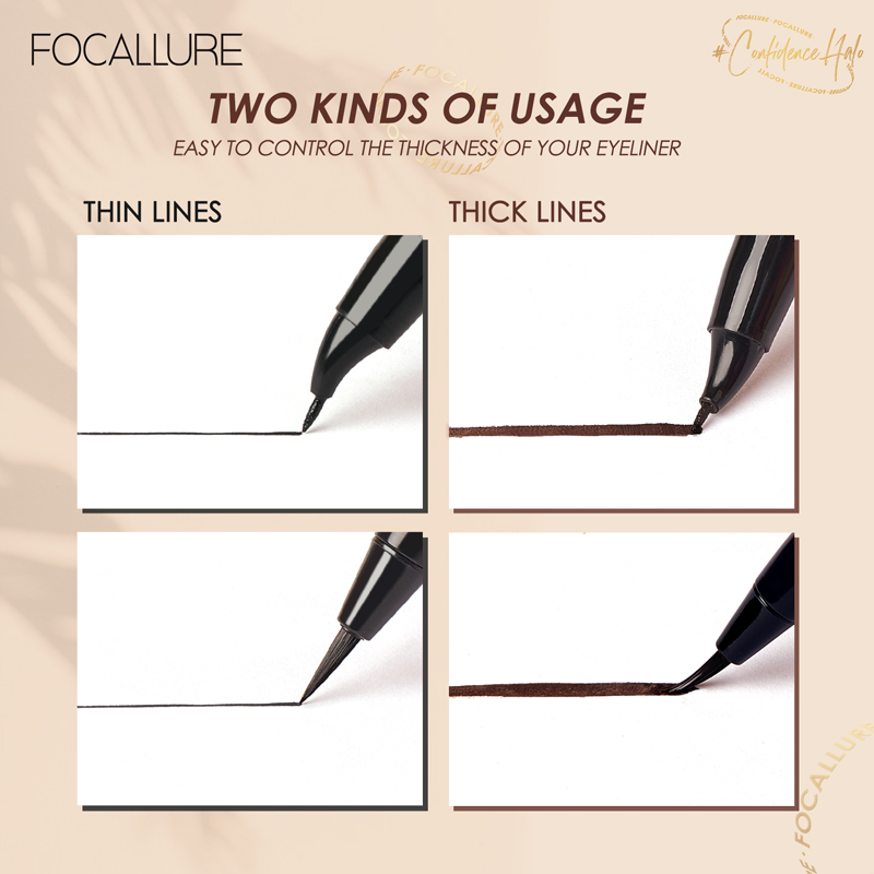 Focallure Liquid Eyeliner is ultrafine quick-drying liquid eyeliner comes with a choice of two different brush types.